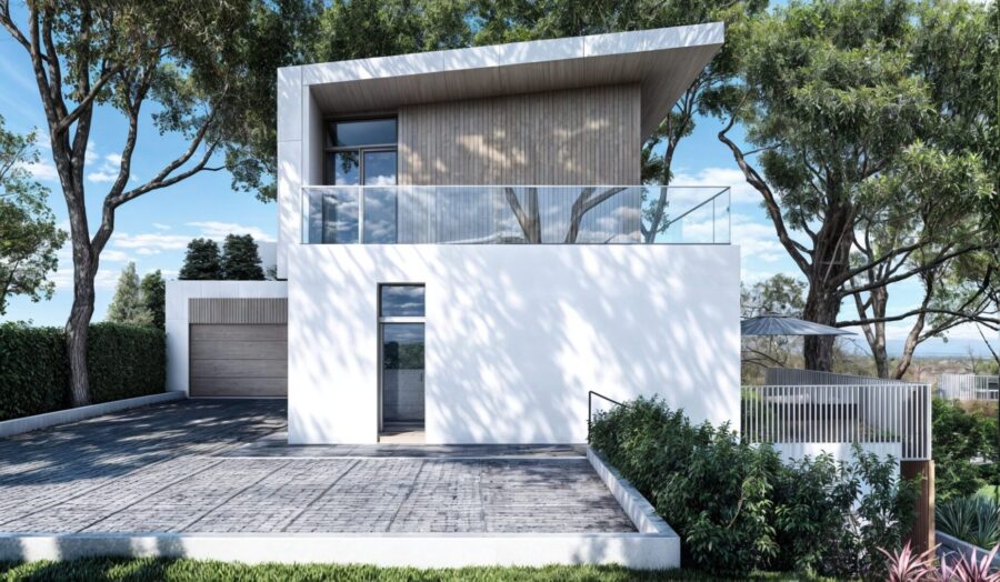 Na szczycie działki stanowiącej drugą linię zabudowy od linii brzegowej Zalewu Zegrzyńskiego , w miejscu dotychczasowych zabudowań gospodarczych zaprojektowaliśmy dom dla Inwestorów którzy cenią sobie rodzinne spotkania w szerokim gronie. Warunki widokowe działki wymusiły konkretną formę budynku i jego otwarcie w kierunku wody (południowym). Z racji na duże wyeksponowanie obiektu na wiatr i cięższe warunki atmosferyczne zastosowaliśmy elewację wentylowana z paneli na rąbek stojący.